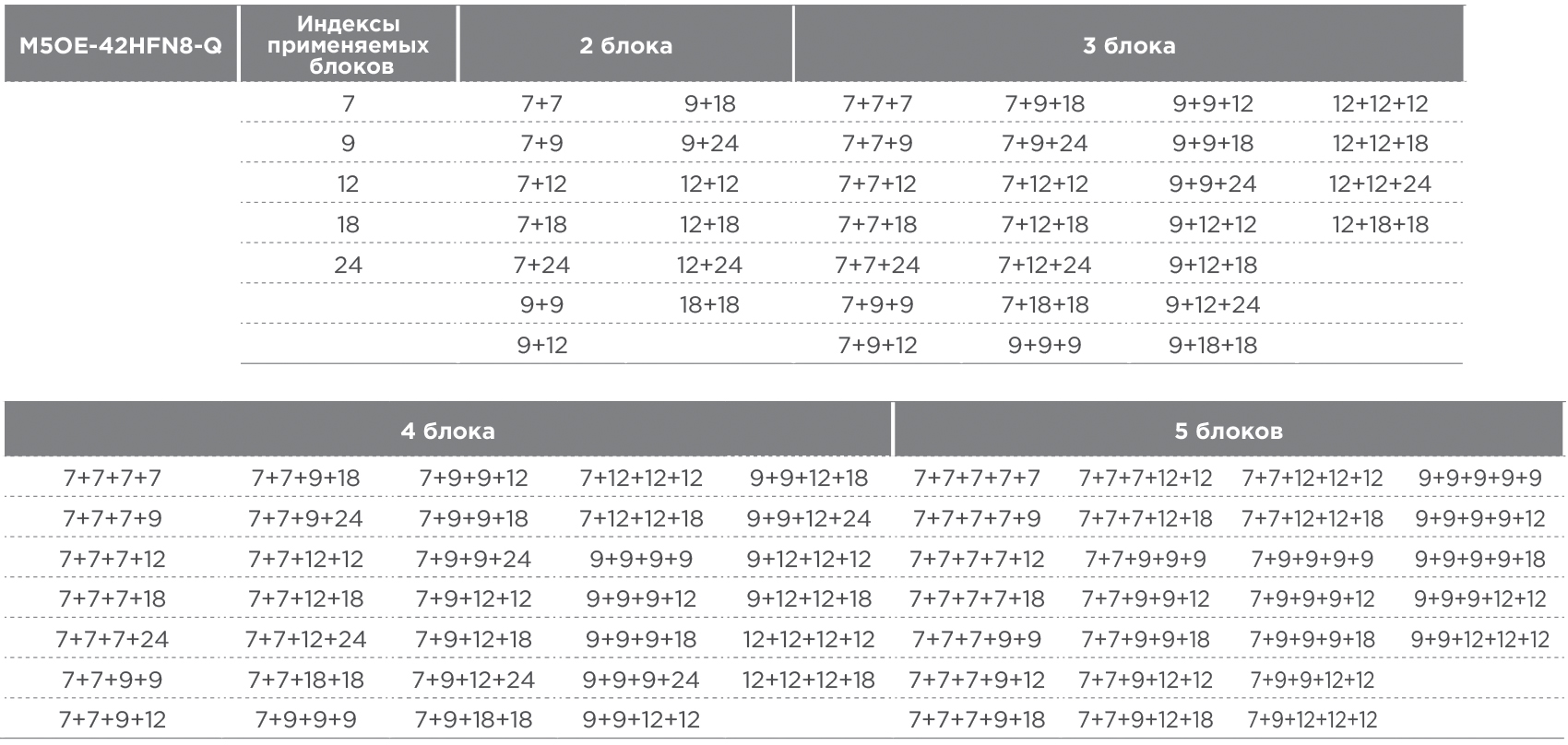 Блок рассчитан на 5 помещений, общей площадью до 120 кв.м. Комбинации внутренних блоков подбираются индивидуально, подходящие внутренние блоки Midea можно выбрать здесь.