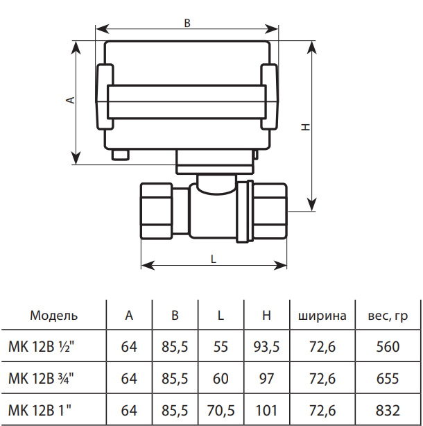 Шаровой кран с электроприводом MK 12В 1/2