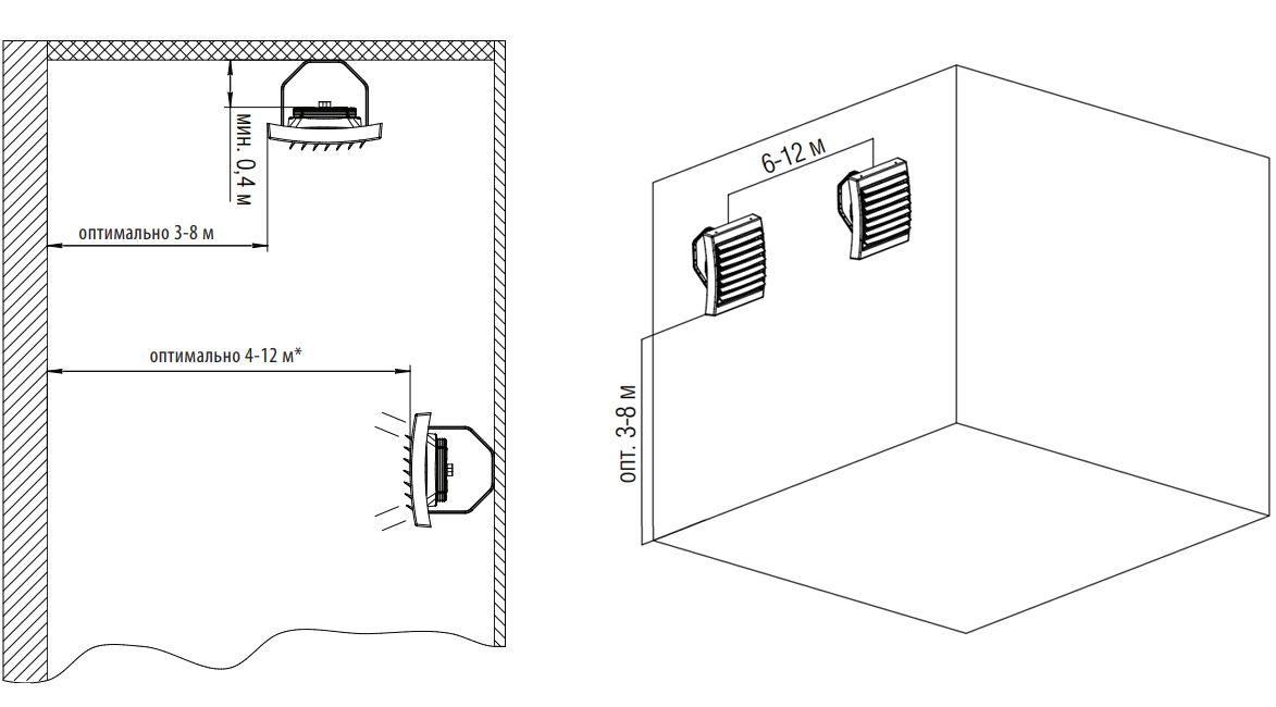 Варианты размещения при настенном монтаже: