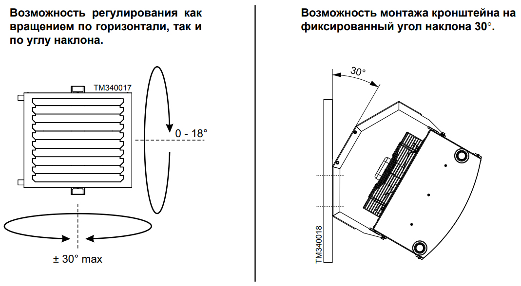 • Поворотные жалюзи, позволяющие направлять потоки теплого воздуха в нужную область помещения.