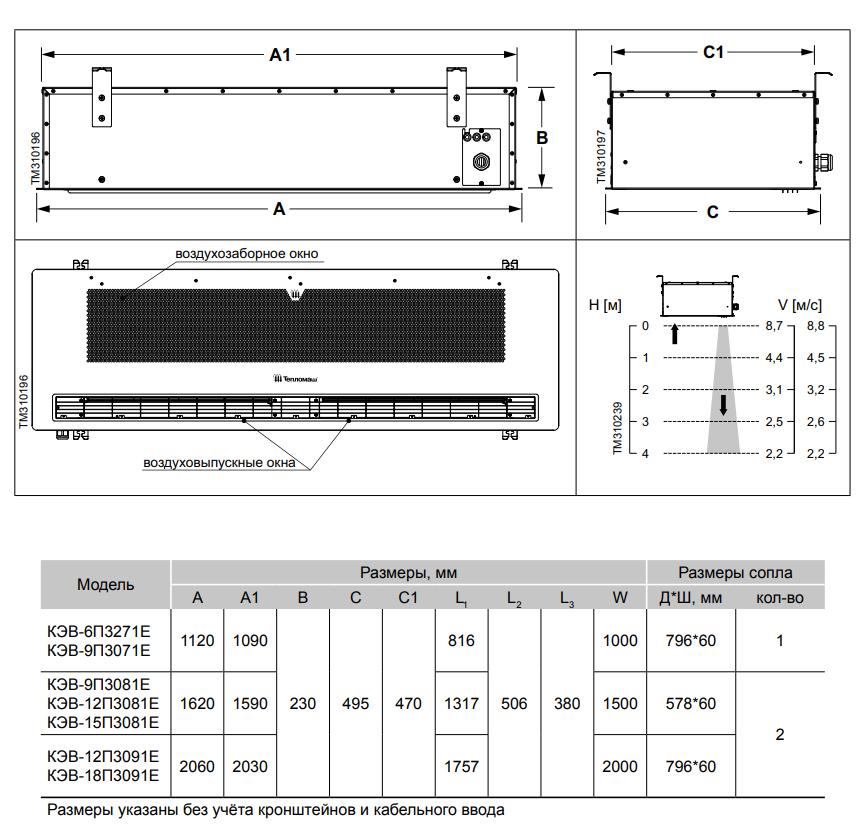 Тепловая завеса Тепломаш КЭВ-18П3091E серия 300 Потолочная