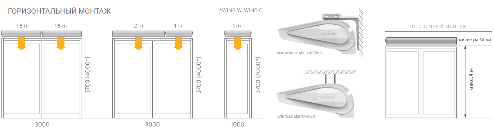 • Горизонтальный монтаж — установка над проемом.