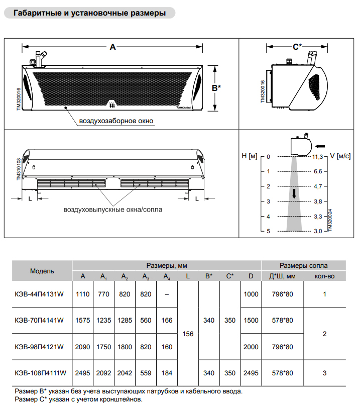 Условная тепловая мощность водяной завесы указанна в кВт.ч при температуре подаваемой воды +95°С / её охлаждением до +70°С / температура окружающей среды +15°С. При изменение любого из показателей мощность будет отличаться от заявленной. (См. технические характеристики модели)