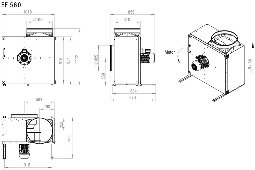 Вентилятор вытяжной кухонный жаростойкий Shuft EF 560D / 3 ф
